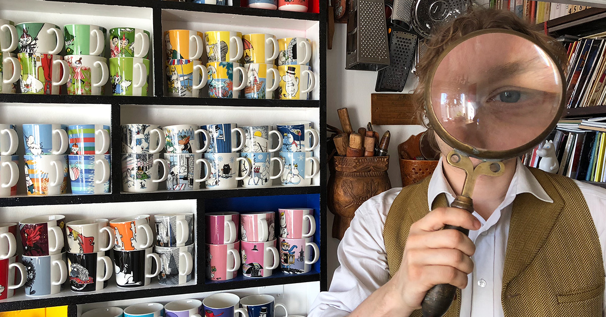The Finnish Moomin mug collector, writer Joni Pyysalo, loves both Moomin books and in their sarcasm and irony, also the great Moomin comics. His hobby, collecting Moomin mugs, began just like it has begun with many other collectors, by receiving the first mug as a gift. Now, 25 years later, a collector living in Turku, Finland has all the Arabia's Moomin mugs in his collection.