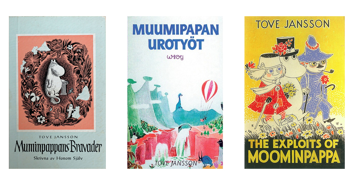 The Exploits of Moominpappa (original title in Swedish: Muminpappas bravader) is a book about Moominpappa. Memoirs start when Moominpappa is found in a shopping bag on the doorstep of the Moomin Foundling Home and end with the story of Moominpappa’s and Moominmamma‘s first encounter on a stormy night.