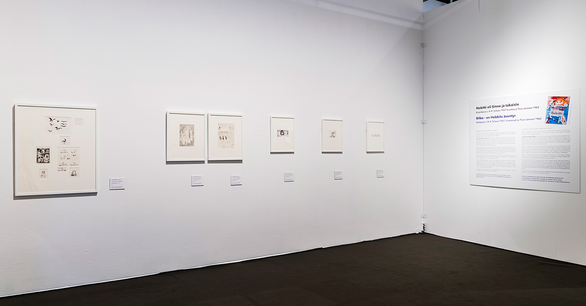 Tove Jansson’s Hobbit illustrations are presented to this extent for the very first time: on exhibit are 21 illustrations that have been loaned by Vantaa Art Museum from Tampere Moomin Museum.