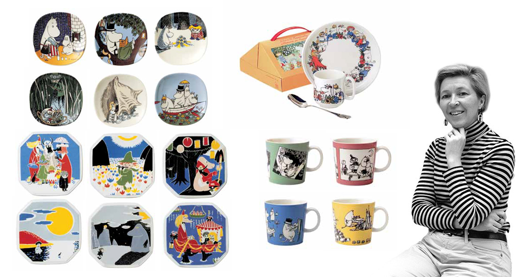 Already in summer of 1990, Tove Slotte went to present the first ready-made Moomin dishes to Tove Jansson and her companion Tuulikki Pietilä. The first set consisted of wall plates, mugs, and a children’s set. Jansson wished for a little colour change only for one plate, otherwise, she approved the products into production. The first Moomin collection included also the figurines designed by Tuulikki Pietilä.