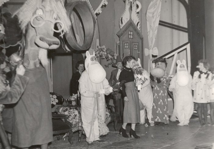 Svenska Teaternin Mumintrollet och kometen -esityksen jälkeen vuonna 1949.