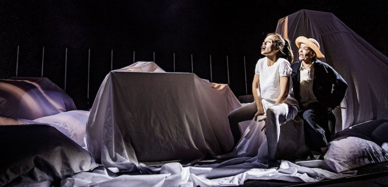 På Lilla Teatern gör Sue Lemström rollen som farmodern och Jessica Grabowsky spelar Sophia. Ljuddesignern Hanna Mikander har en framstående roll, då hon på scenen tillsammans med skådespelarna skapar ljudvärlden inför publikens ögon. Ibland tar man till oväntade lösningar – som ljudet av en båtmotor som skapas med hjälp av en stavmixer i yoghurt.